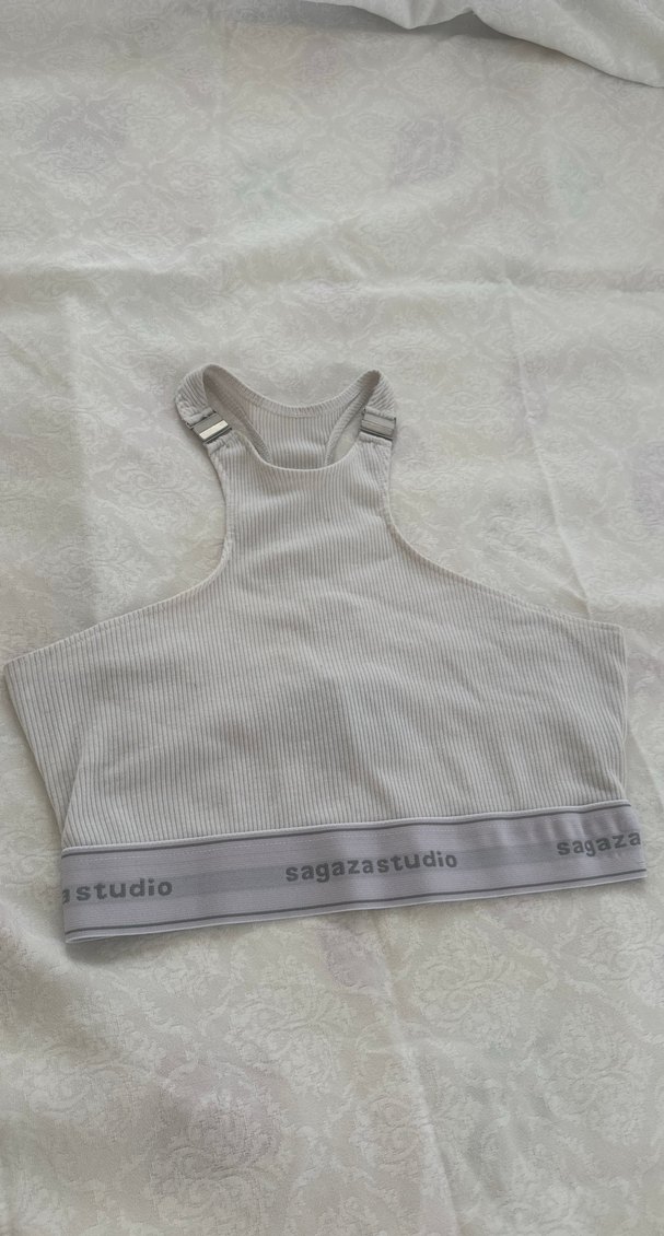 Sagaza Madrid markasına ait gri renkte, kısa kesim ve fitilli dokulu, elastik bantlı streetwear bralet.