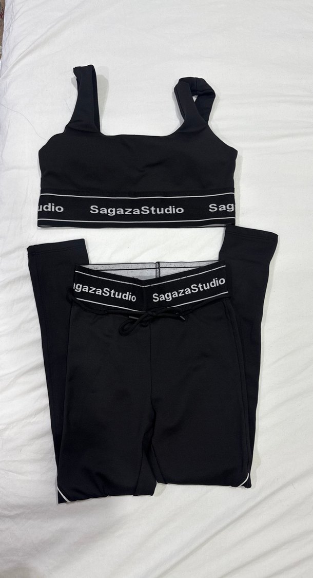 SagazaStudio marka, elastik bantlı, baskılı, siyah straplez mini spor takımı, fit kesimle cesur sokak stili için uygundur. Ürün takım halinde satıştadır. Ürünü bir kez giydim.