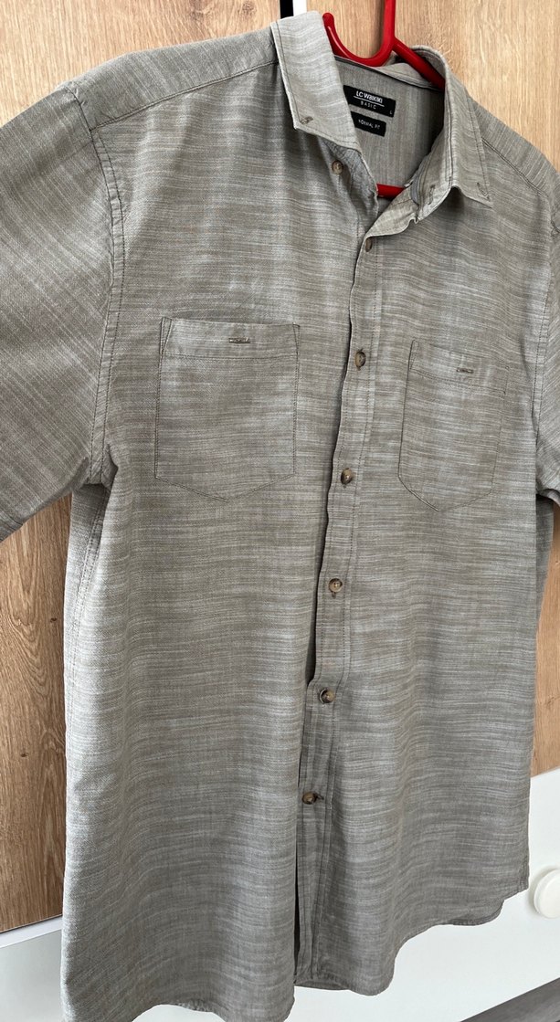 Yumuşak keten kumaştan, düğmeli ve cep detaylı gri kısa kollu erkek gömlek. Salaş kesimi ve yakasıyla gündelik bohem stil için uygundur.