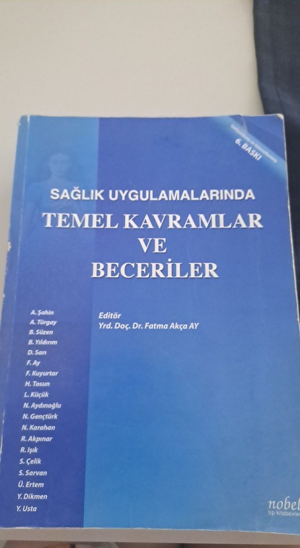 Yrd. Doç. Dr. Fatma Akça AY editörlüğünde sağlık uygulamalarında temel kavramlar ve becerileri içeren kapsamlı bir kitap. kitap üzerinde ders çalışılmıştır ama eksik sayfa yoktur.