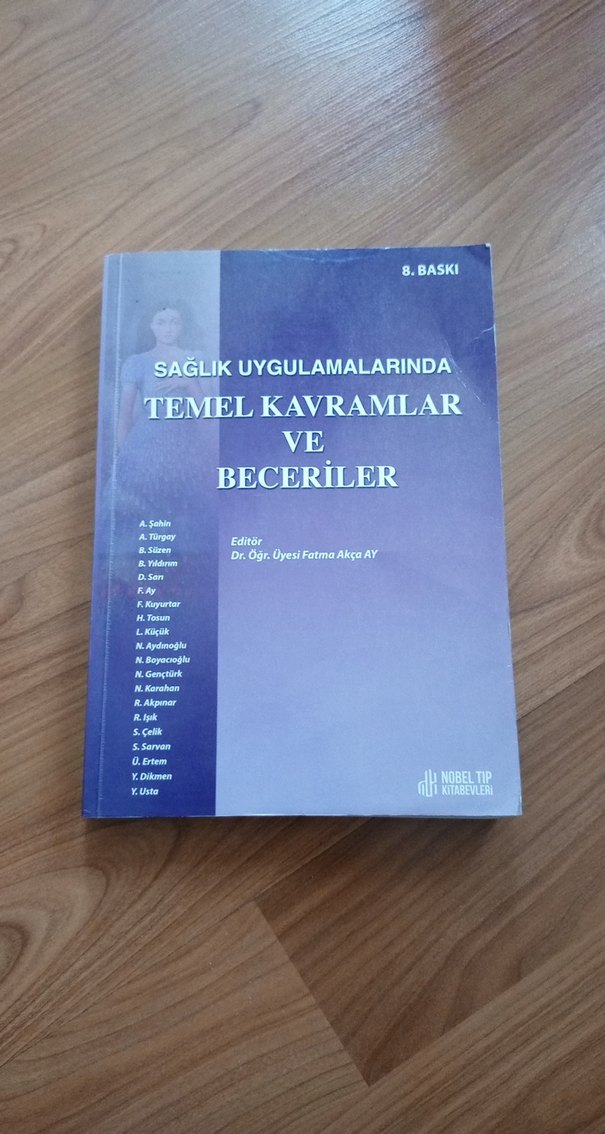 Sağlık uygulamalarında temel kavramlar ve becerileri içeren, Dr. Öğr. Üyesi Fatma Akça AY editörlüğünde 8. baskı kitap. ÇOK TEMİZ KULLANILDI 8. BASKI HİÇBİR DEFORMESİ YOK