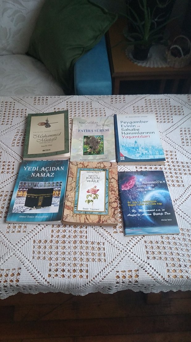 Sahabe, kadınlar ve aile yaşamını anlatan, Fatiha Suresi ve Peygamberin evini konu alan kitaplardan oluşan set. 1 tanesinde kapakta yırtılma var diğerinde hafif sataşmalar ensondaki mevlidi şerif kitabın ön başlık kopmuştur okumak isteyene uygun veriyorum sayfamdan ürün alana bu kitapları hediye göndericem istiyene