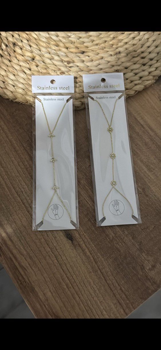 Paslanmaz çelikten, zincir detaylı altın renk el zincirleri. Günlük kullanıma uygun, bohem ve minimalist tarzda.