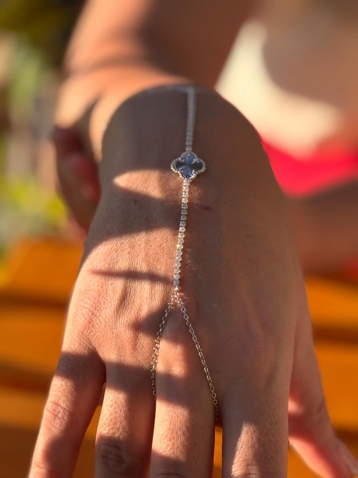 Bohem tarzda, zincir detaylı kadın el zinciri.