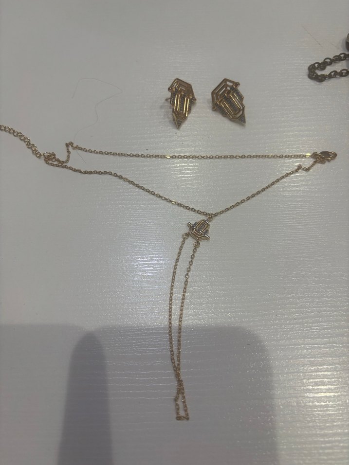 Altın renkli kadın şahmeran bileklik , ince zincir detaylarıyla sade ve bohem tarzda, günlük kullanıma uygun. Küpeler hiç kullanılmamıştır.