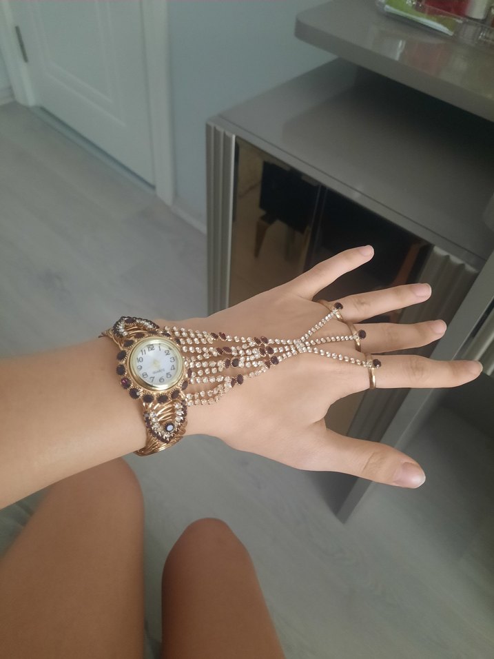 Altın renkli boncuklu kadın el zinciri saat, yılan desenli ve bohem-retro tarzıyla günlük kullanıma uygundur. ⌚ Saat ayar yeri çıktı aktif olarak çalışıyor saatcide yapılabilir aktif olarak kullanmadığım için yaptırmadım hepsiburadadan 2700 tlye alındı