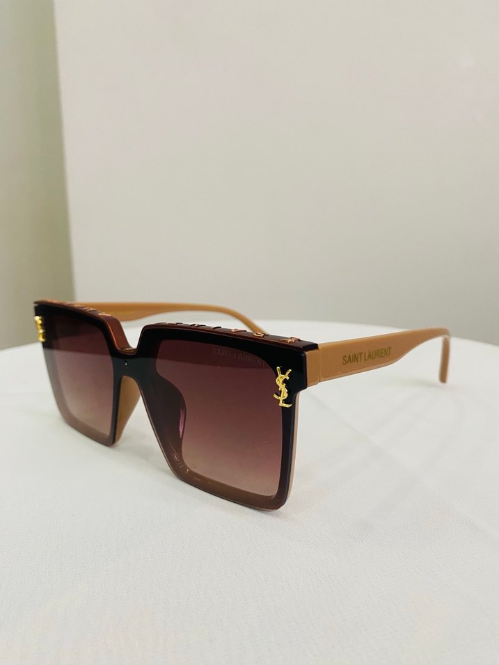Kadınlar için parlak kahverengi şeffaf detaylı, sokak stili Saint Laurent güneş gözlüğü. Paris havası taşıyan, trend ve rahat tasarım.