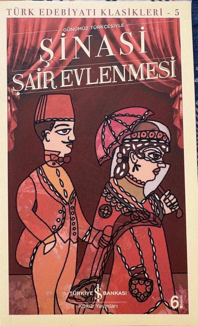 Türkiye İş Bankası tarafından yayımlanan, günümüz Türkçesiyle Sinasi'nin klasik eseri "Şair Evlenmesi". Kapakta geleneksel illüstrasyon yer alıyor.