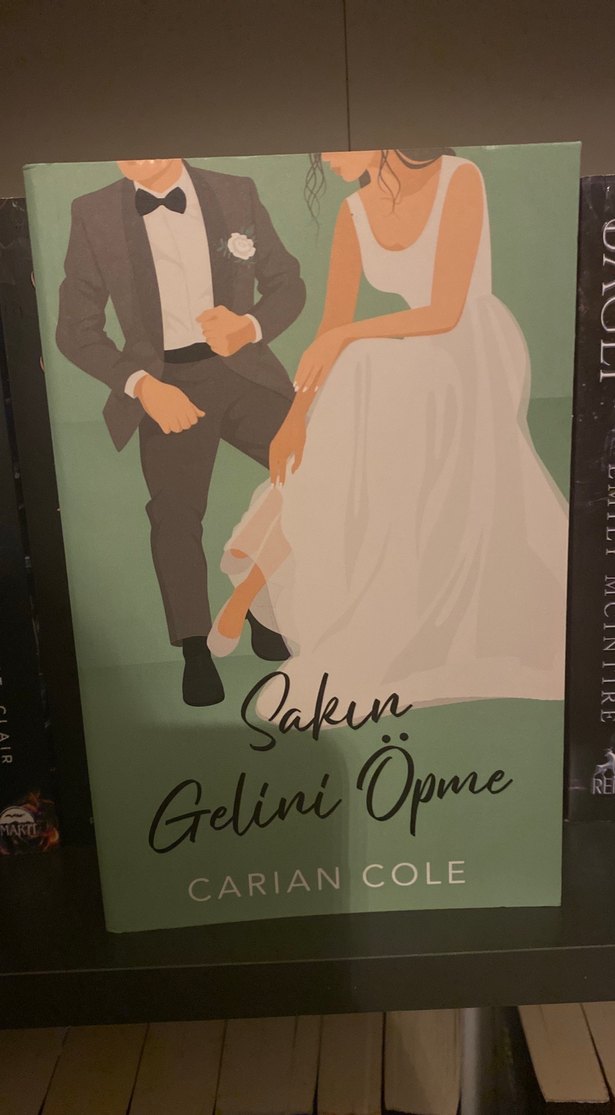 Carian Cole'un 'Sakın Gelini Öpme' adlı romanı, düğün ve ilişkiler üzerine temalar içerir. Kapakta gelin ve damat yer alır.