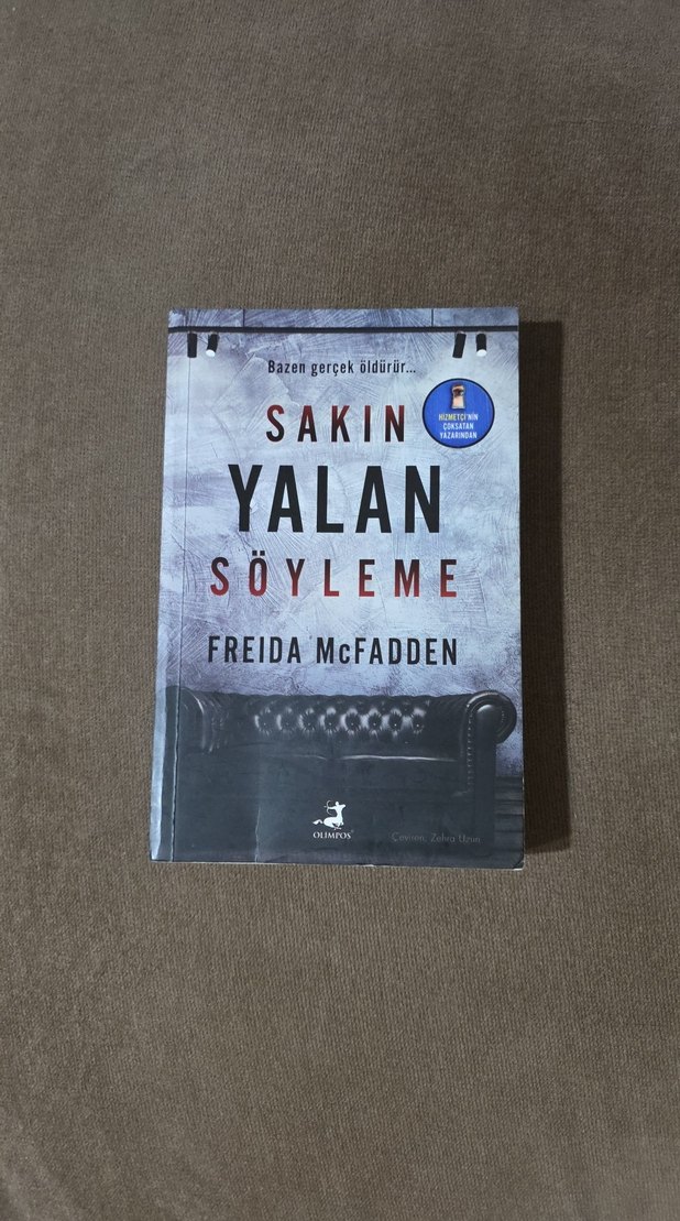 Freida McFadden'in "Sakın Yalan Söyleme" adlı romanı, gerilim dolu anlar ve gerçekleri konu alıyor. Kapağında koyu renkli bir koltuk yer alıyor. Başka bir uygulamadan ikinci el olarak aldım. Okudum ve satıyorum. Orjinal. Resimlerde görüldüğü gibidir. REZERVEDİR. LÜTFEN ALIM YAPMAYINIZ...............