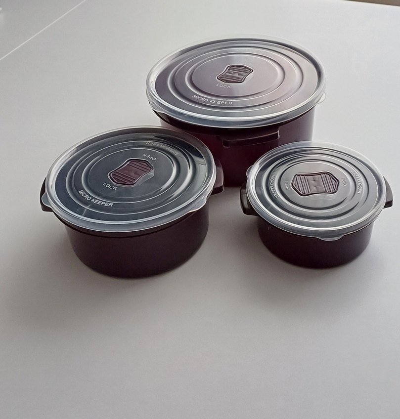 Üç farklı boyda, kilitli saklama kapları seti Sıfır ürün hiç kullanılmadı.