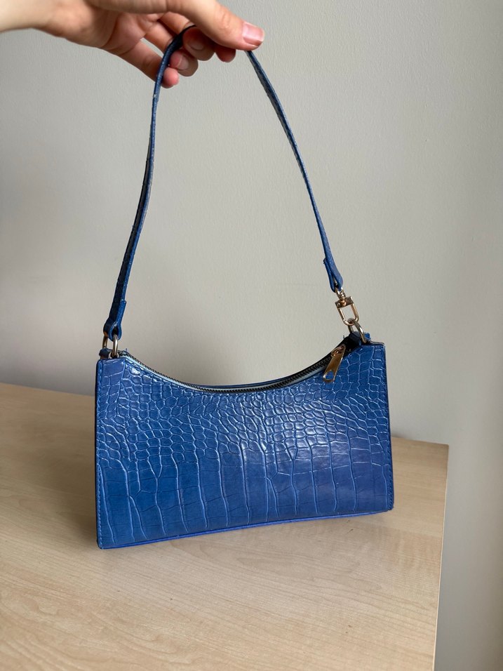 Mavi deri kadın çanta, parlak yılan deseni ve tokalı detaylarla trendy sokak tarzına uygun.