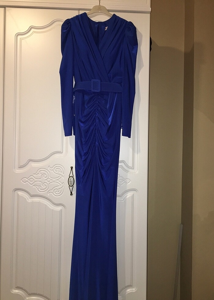 Sadece 1 kere giyildi 2 saatliğine. 36 beden beli kemerli saks mavisi abiye 3000 ₺ye alındı.