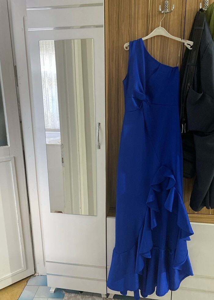 ŞAKS MAVİSİ ABİYE DAVET ELBİSESİ GECE ELBİSESİ
