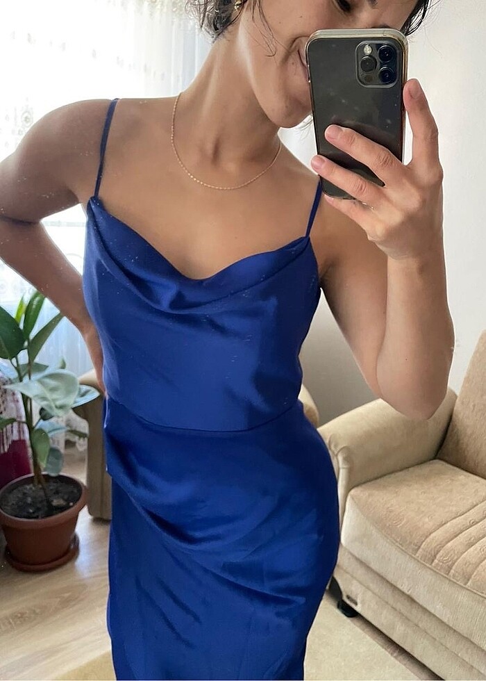 Saks mavisi gece elbisesi