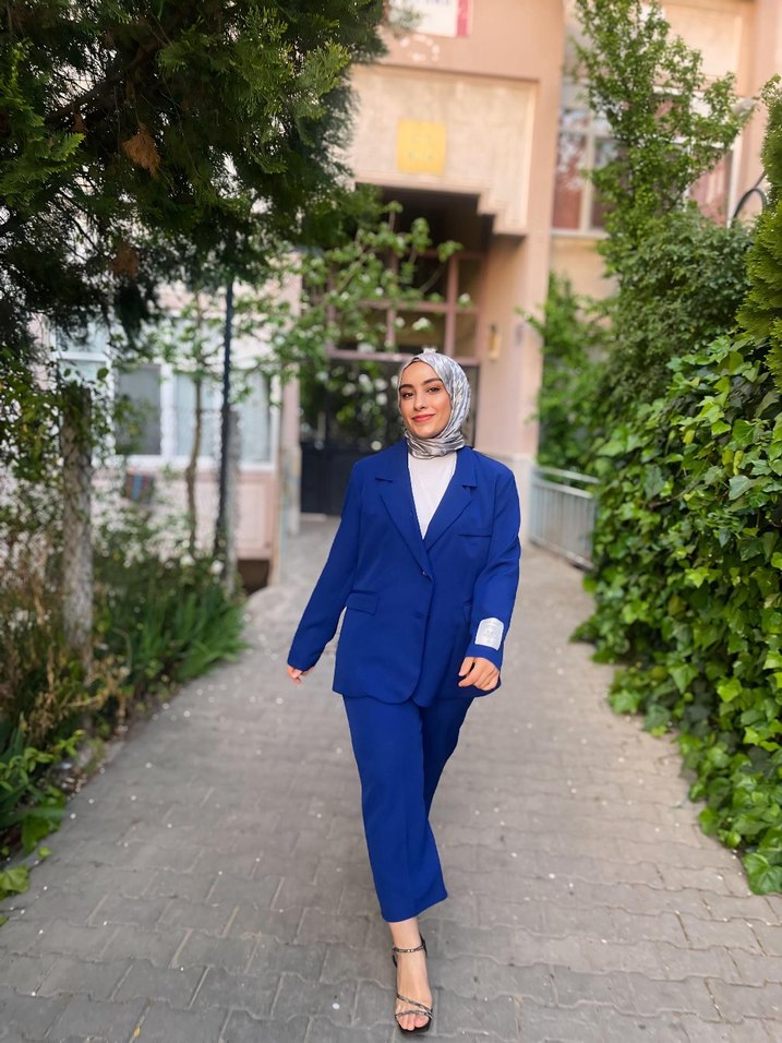 Kadınlar için saks mavi renkli, normal boyda ve rahat kesim ofis takımı. Uzun kollu, yakası kesimli ve desen içermeyen, sentetik kumaştan üretilmiştir. Şık ve rahat bir görünüm sunar. hiçbir deformasyonu yoktur yeni gibidir dolabımda tesettür giyim ve abiye modelleri mevcuttur göz atmayı unutmayın teklifler değerlendirilir
