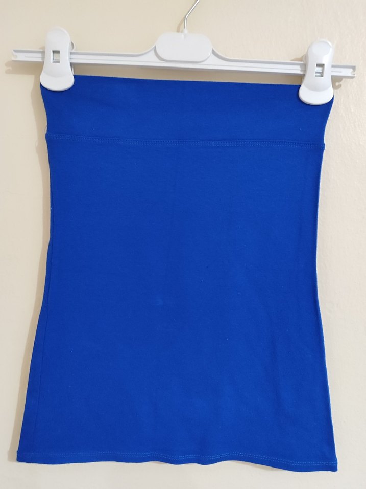 Canlı saks mavisi rengiyle dikkat çeken bu straplez bluz, sade ama iddialı bir görünüm sunar. Üst kısmındaki esnek bant sayesinde kayma yapmaz, gün boyu rahat kullanım sağlar. Vücuda oturan formu belinizi ve hatlarınızı zarifçe vurgular. Yumuşak ve esnek kumaşı sayesinde hem konforlu hem de şıktır. Jean, etek veya şortlarla kolayca kombinlenir; günlük kullanımdan gece şıklığına kadar her ortama uyum sağlar.
