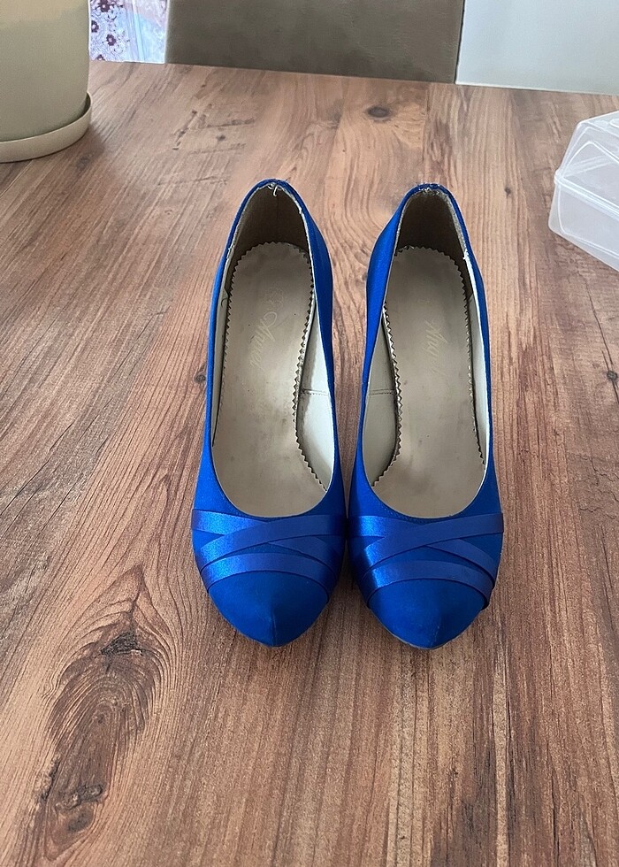Saks mavisi topuklu ayakkabı