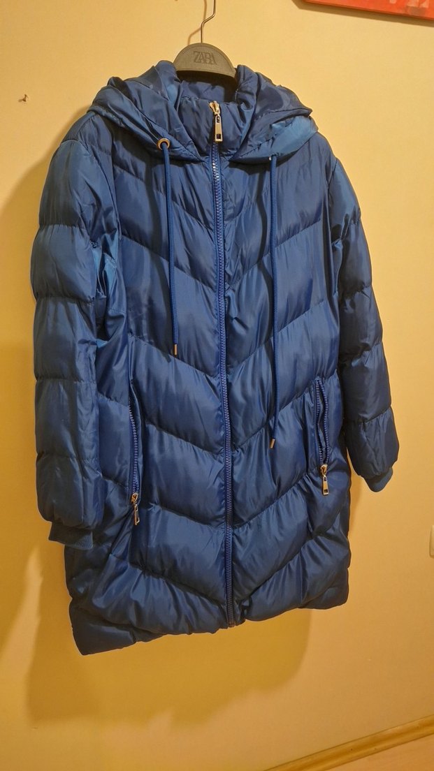 on kısmında minik yırtık mevcuttur. kullanıma engel değildir. harici sorunsuz üründür #mavi #mont