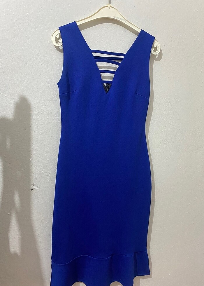 Bikaç kez giyildi ufak bir defosu mevcut rahat kumaşı gögüs dantel detaylı diz kapağı hizasında yarım balık elbise