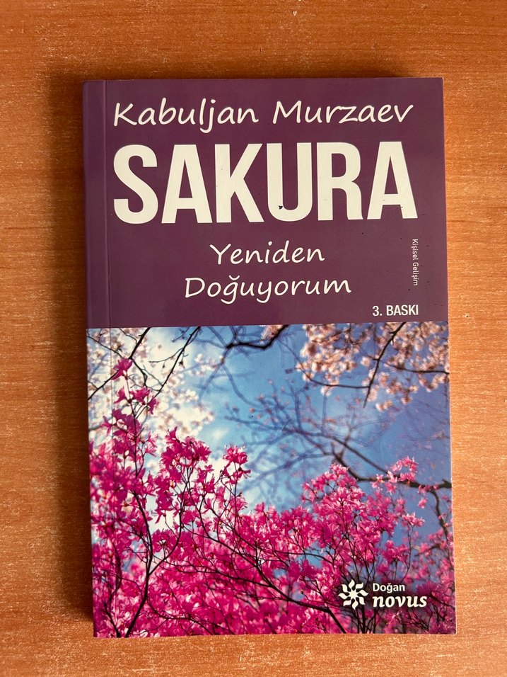 Kabuljan Murzaev'in "Sakura Yeniden Doğuyorum" adlı şiir kitabı, Doğan Novus tarafından yayımlanan 3. baskıdır. Kapakta canlı pembe kiraz çiçekleri yer alır.