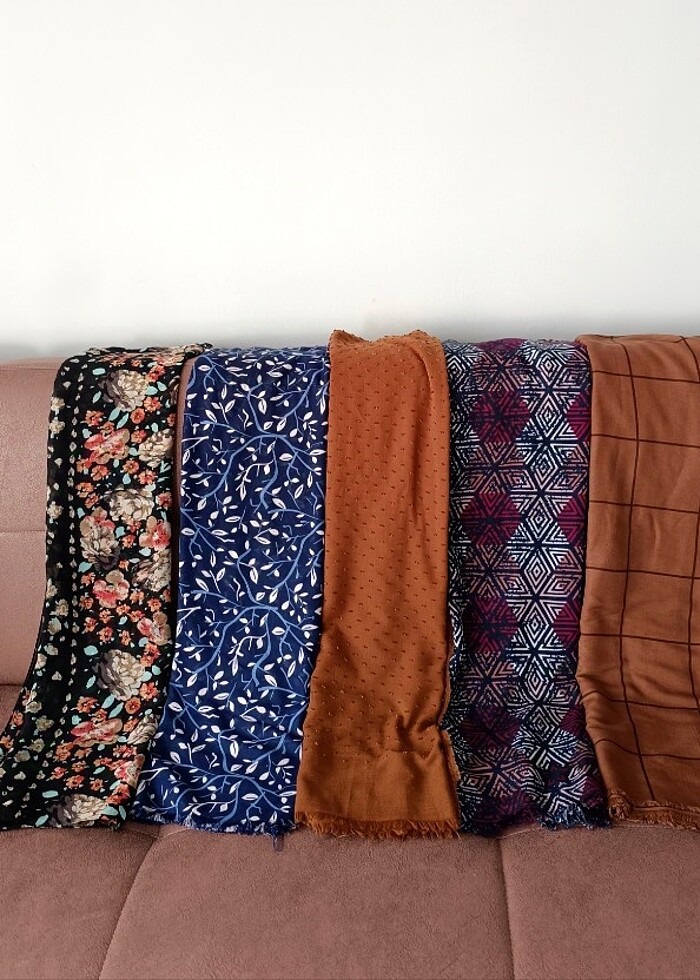 Hepsi verilecektir ( 5 adet ) en baştaki siyah şifon sadece diğerleri pamuklu şal.