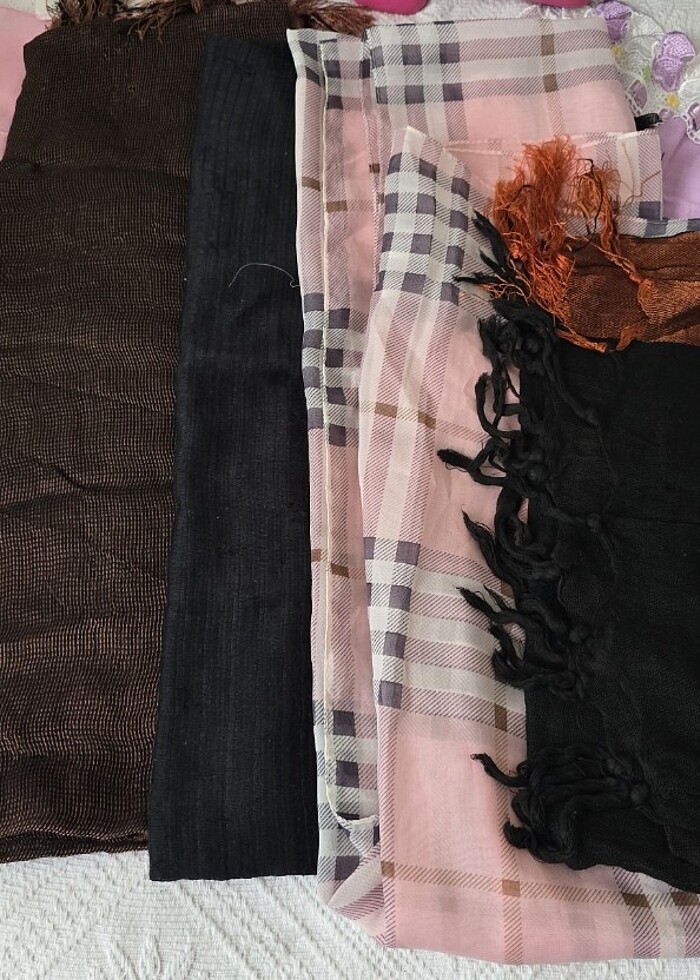 Farklı model ve renklerde değişik şallar hepsinin fiyatıdır toplam 20 adet şal vardır