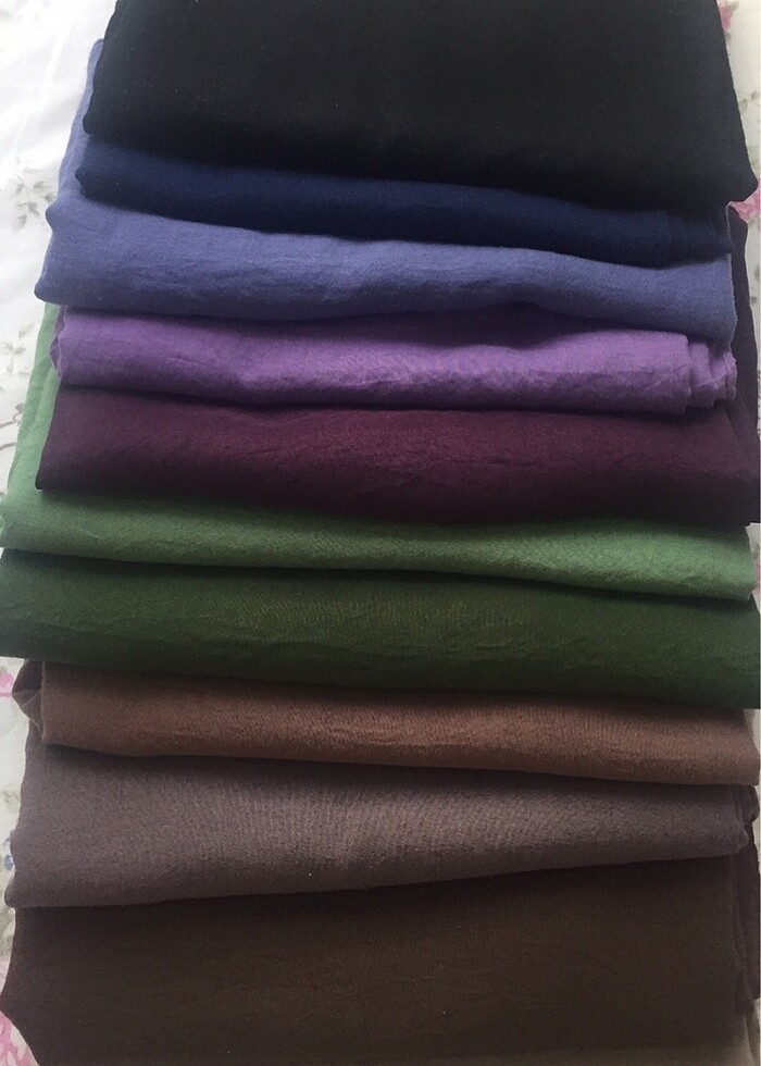 İndirim uygulanır Tanesi 20 ₺ Hafif tüylenmeler var Renkleri ; krem, kahve, siyah, lacivert, vizon, açık yeşil, koyu yeşil, lila, mavi Renkler genellikle pastel tonlarda Toplamda 11 şal