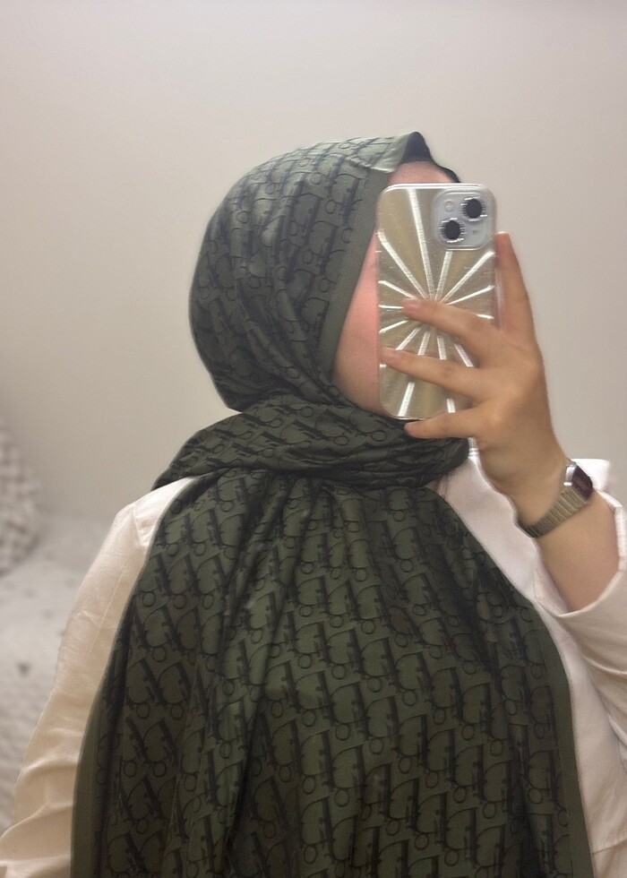 Dior desenli ipek kaşmir çift taraflı şal Haki renk Ürün hiç kullanılmadı