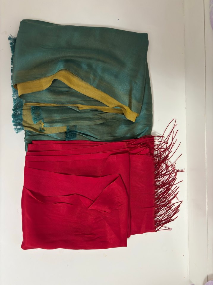 Kadınlar için çok renkli, ipek görünümlü, püsküllü ve drapeli bohem tarzda şal. Canlı renklere sahip yumuşak dokulu kumaş.