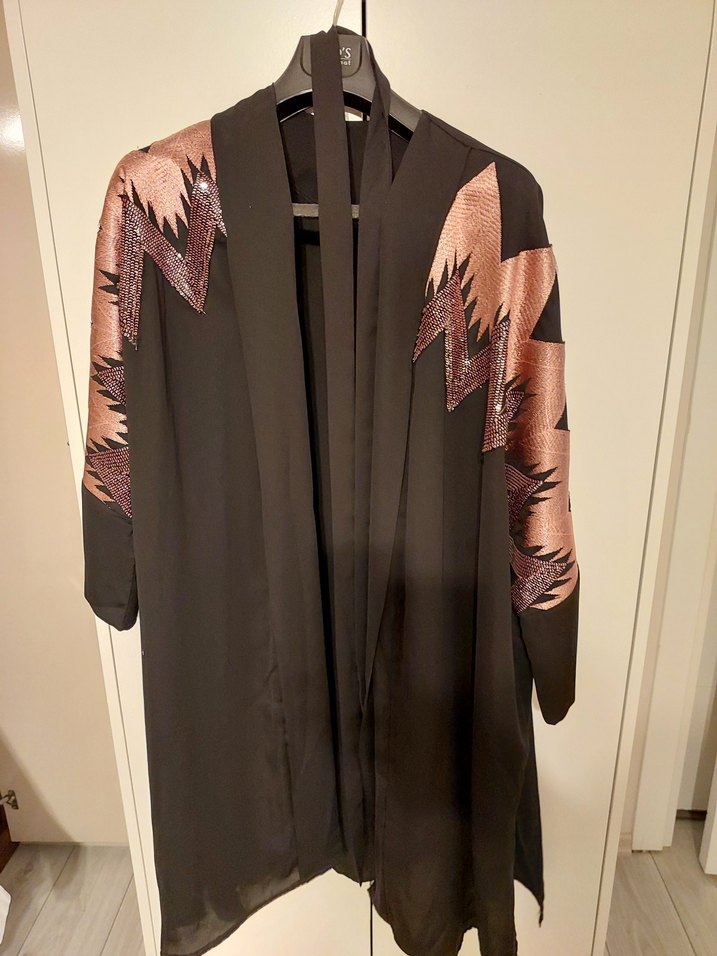 Büyük beden Şifon işlemeli kuşaklı boy 104 iki kolt 86