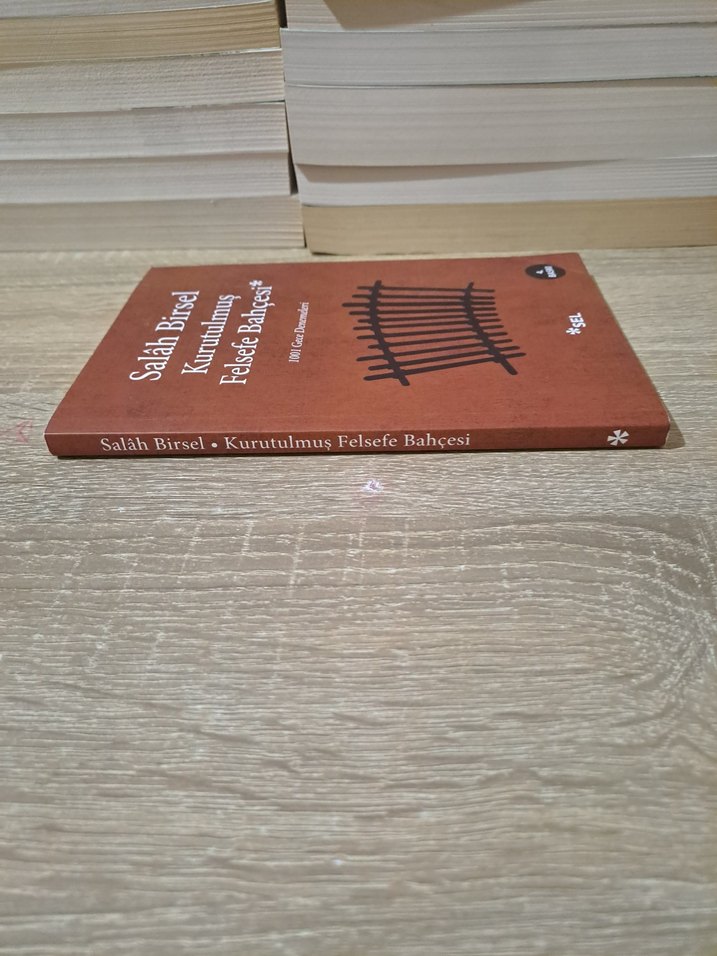 Salah Birsel'in "Kurutulmuş Felsefe Bahçesi" adlı deneme kitabı sade kapak tasarımı ve minimalist çizimle sunuluyor. Kitap ciltli değil, yumuşak kapaklıdır.