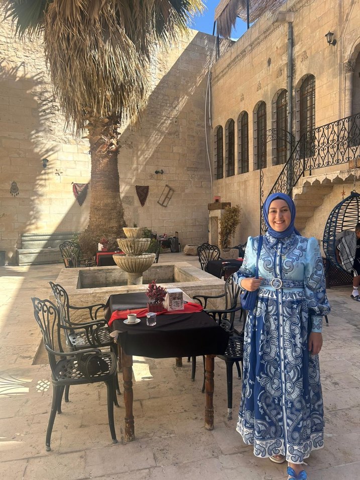 Salaş kesim, bağlamalı, uzun kol ve balıkçı yaka detaylı, açık camel renkli bağlama desenli kadın elbisesi.bir kez tatilde giyildi ürün sıfır gibidir