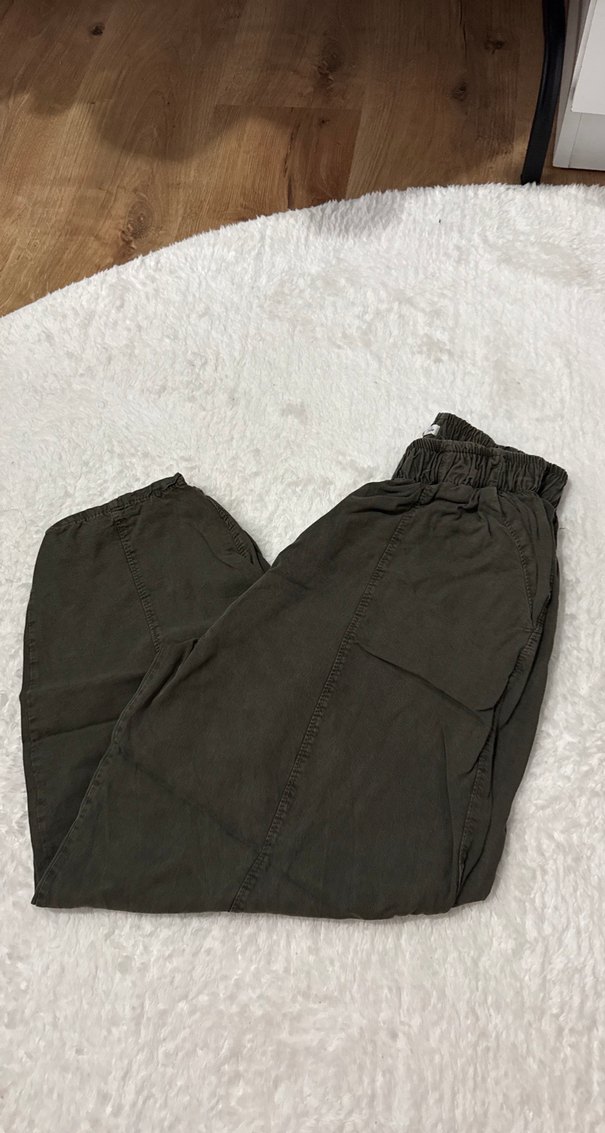 Yumuşak keten kumaştan, salaş kesim ve midi boyda kahverengi kadın pantolon. Rahat elastik beli ile açık hava kullanımı için uygun.
