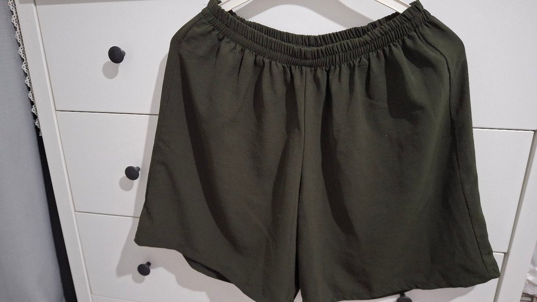 Yumuşak keten kumaştan, salaş kesim şortu. Elastik bel bandı ve sade, desensiz tasarımıyla günlük ve sokak stiline uygun, koyu haki renkte kısa boy.