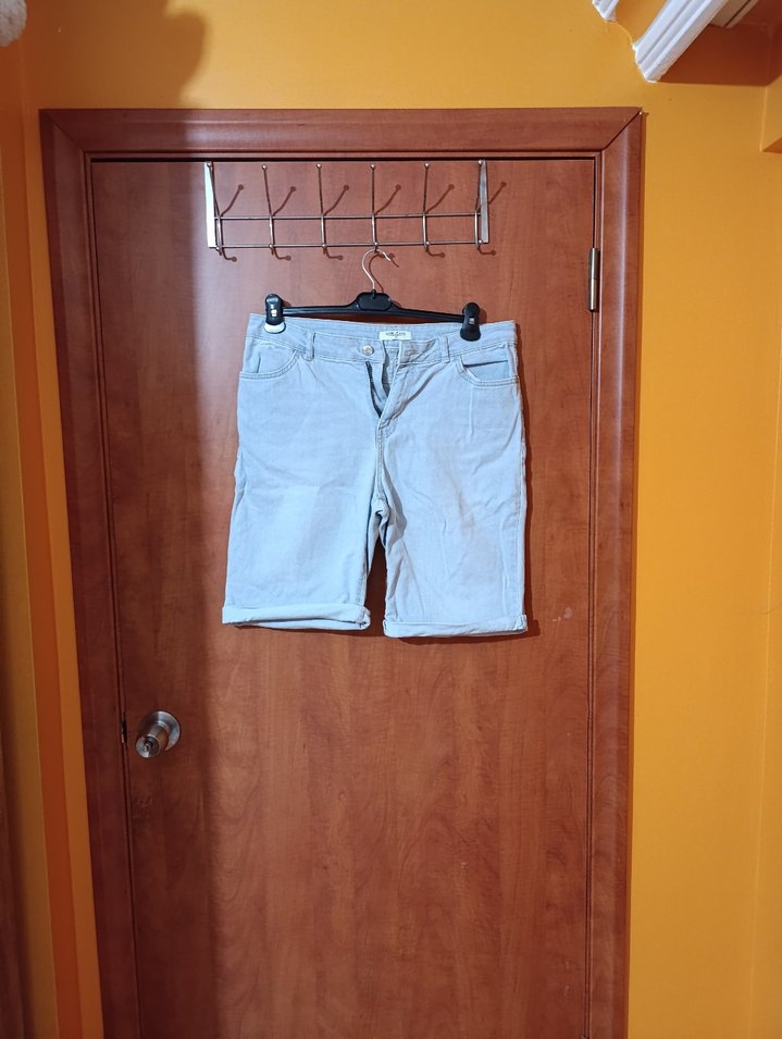 Mavi renkte, salaş kesim kot şort, kemer detaylı, kısa boylu, günlük ve sokak tarzı için uygun.