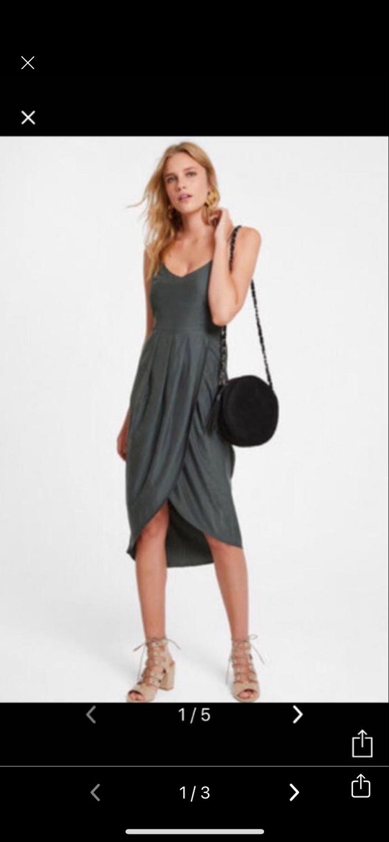 Gri renkte, salaş kesim ve drapeli midi elbise. Askılı ve straplez yaka detaylarıyla, sentetik kumaştan üretilmiştir. Romantik akşamlar ve günlük sokak stili için uygundur.