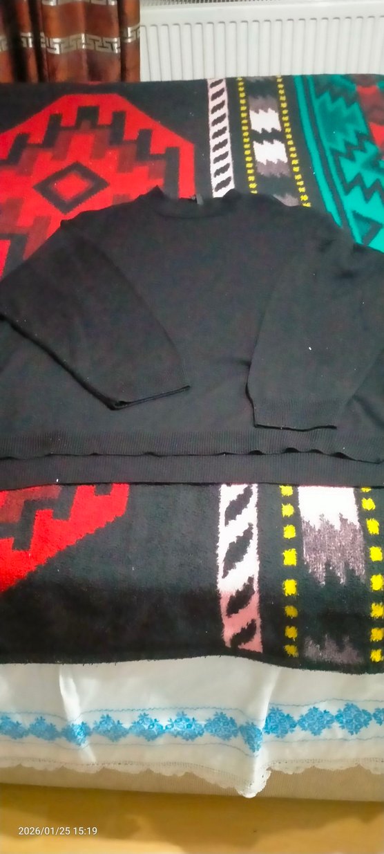 Uzun kollu, yuvarlak yakalı, salaş kesim siyah hamile kazağı, örme kumaştan olup günlük kullanıma uygundur. Normal boyda ve rahat bir tarza sahiptir.