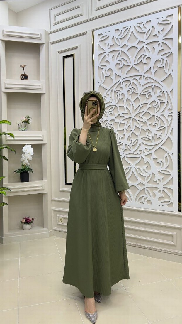 Salaş Kesim, Uzun Kollu Haki Kadın Elbise