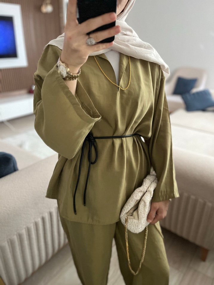 Salaş Kesim Uzun Kollu Kemerli Kadın Takım