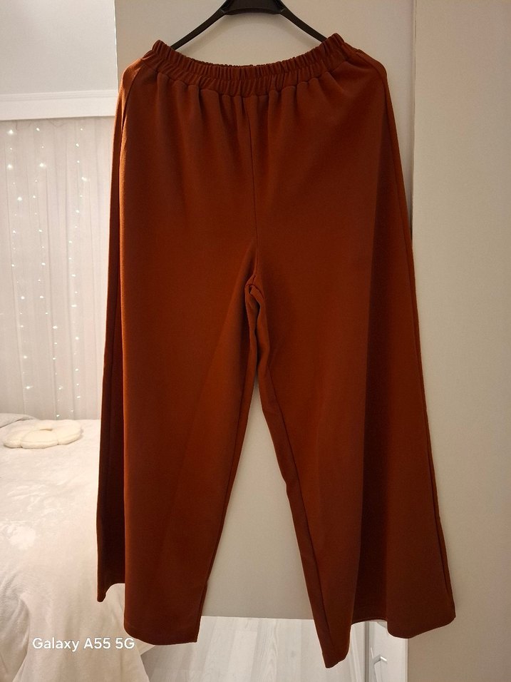 Yumuşak sentetik kumaştan yapılmış, taba rengi salaş pantolon, günlük sokak stiline uygundur. ✨