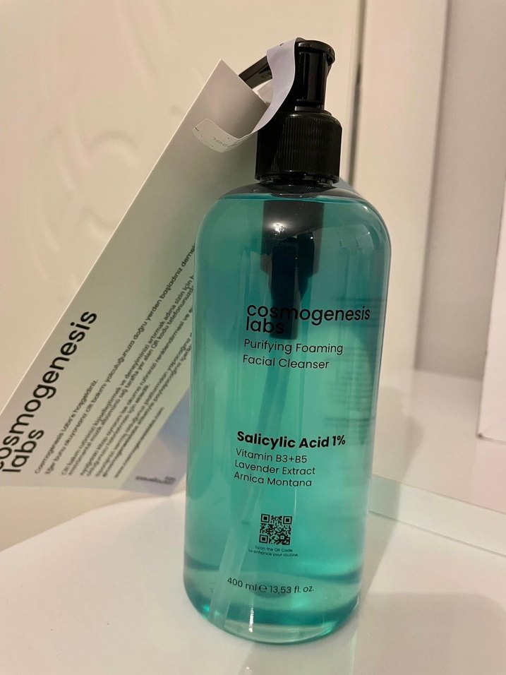 %1 Salisilik asit, B3+B5 vitamini, lavanta ve Arnica Montana özleri içeren arındırıcı köpüren yüz temizleyici.
