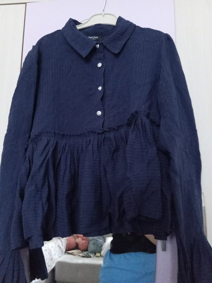 Etek üstü kısa gömlek standart beden 1 kez kullanıldı kol uçları ve alt kısmı hafif piliseli