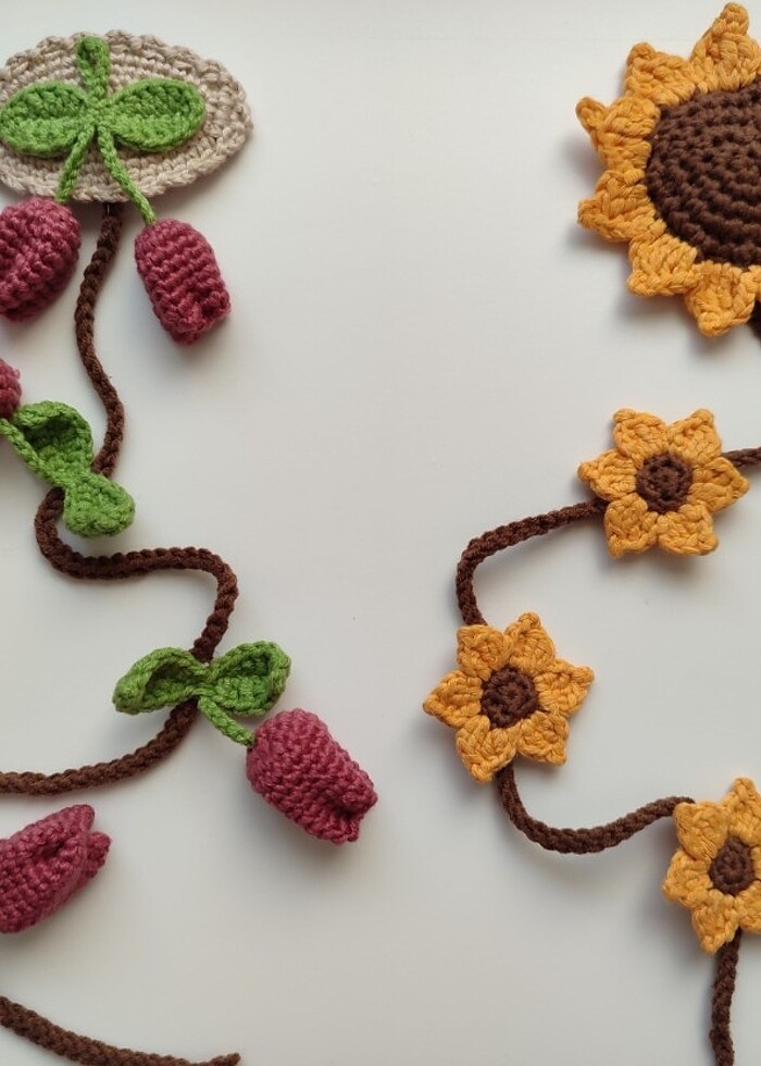 örgü salkım toka. Ayçiçeği, incili puf papatya: 35 tl Lale: 50 tl