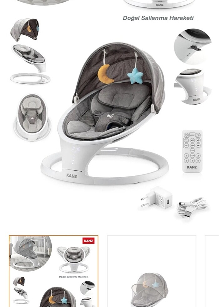 kanz swan modeli 9kg kadar taşıyor bluetooth özelliği mevcut kendi şarkıları ninnileri var hızını 5 kademeye kadar ayarlayabiliyorsunuz bütün parçaları her şeyi mevcut çok temiz kullandım sıfırdan farkı yok diyebilirim bebeğim yalnızca yenidoğan döneminde sevdi onun haricinde kullanmadık