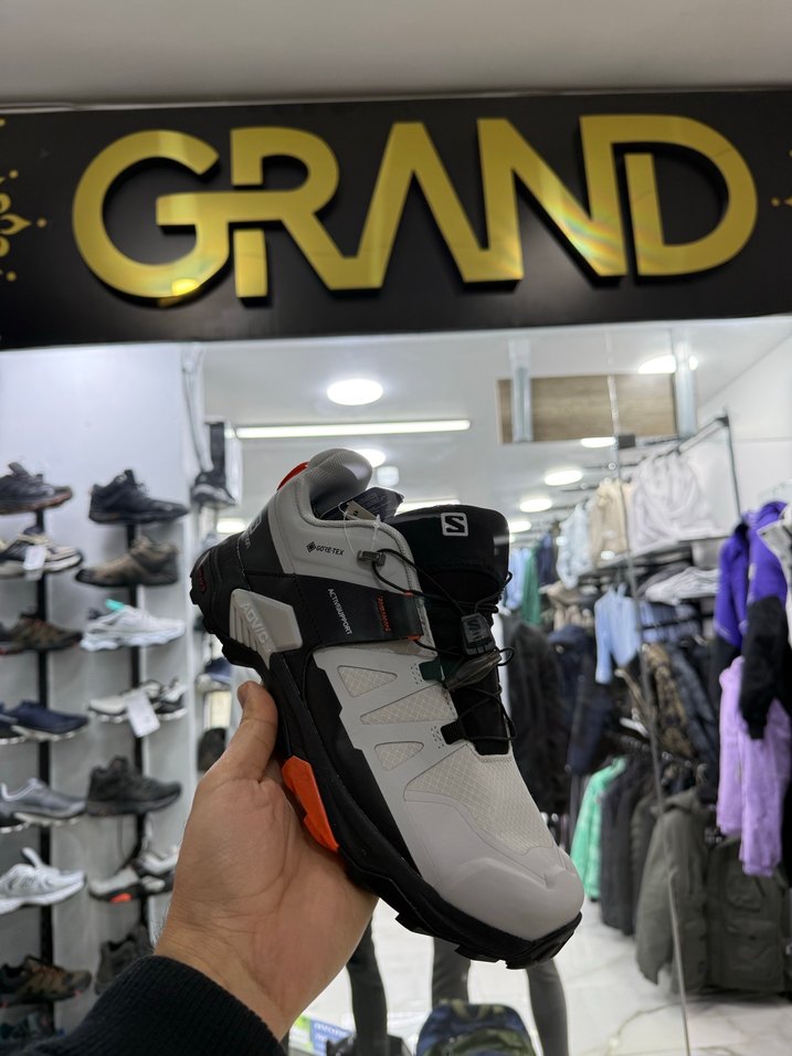 Beyaz ve gri renklerde baskılı, kauçuk tabanlı erkek outdoor spor ayakkabısı, Velcro bantlı, trend sokak tarzına uygun.