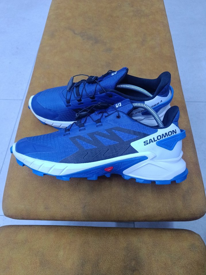 Salomon erkek mavi spor ayakkabı, koyu renkli baskılı, kauçuk tabanlı ve Velcro bantlıdır, sokak stili ve spor için uygundur.