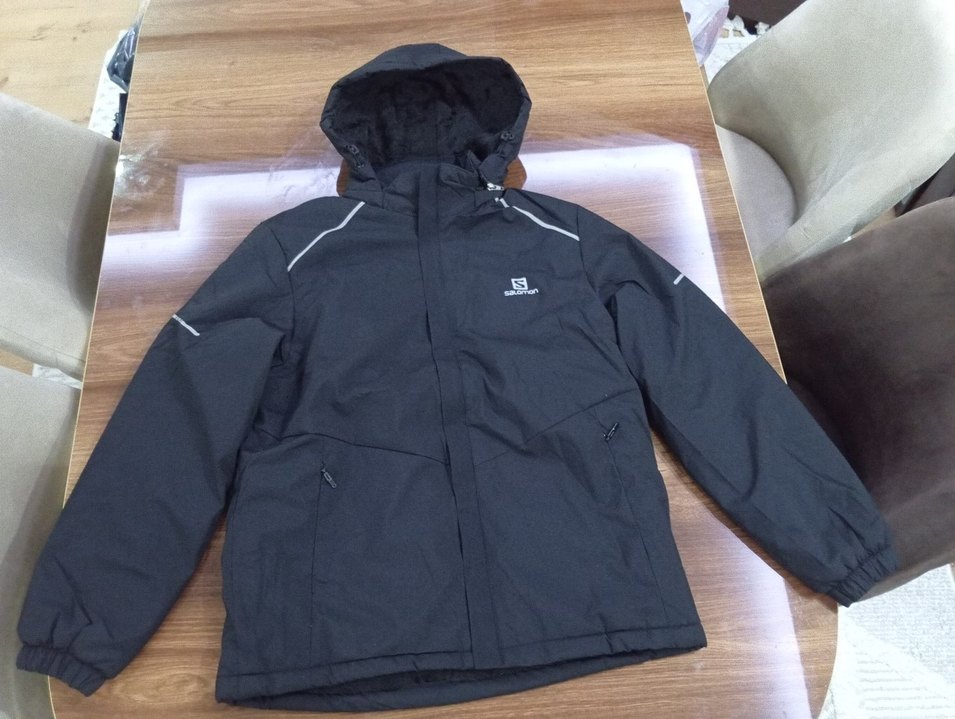 Salomon Erkek siyah Su gecirmez mont, kapüşonlu ve İci Yünlü fermuarlı. Uzun kollu, normal midi boyda, rahat ve sıcak kumaştan, günlük şık tarz için uygun. Boy 68 cm En 54 cm beden XL yazıyor ama bir beden kucuk yani Larg 65)70 kg arası olanlara olur