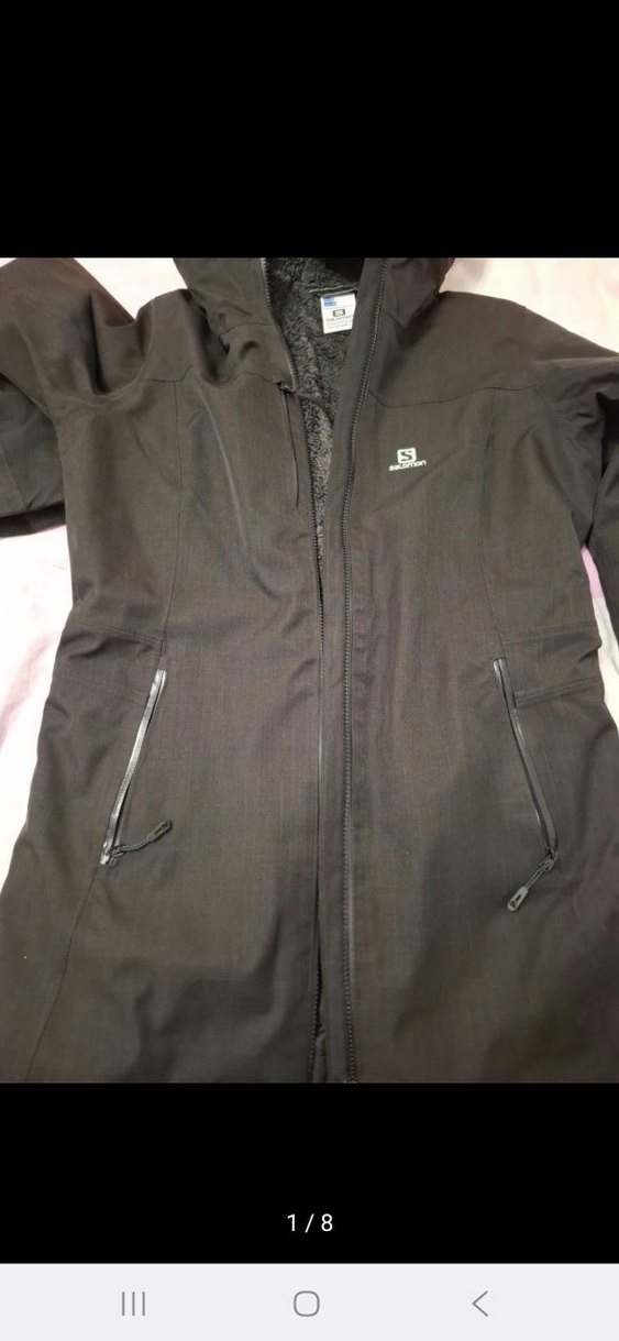 Salomon kadın su ve soğuk geçirmez orjinal 10 K mont yeniden farksızdır sadece bikaç kez giyildi fermuarlı cepleri ve kesimli yapısıyla siyah kadın midi mont Uzun kollu, sentetik kumaştan, günlük ve sokak stili için uygundur.