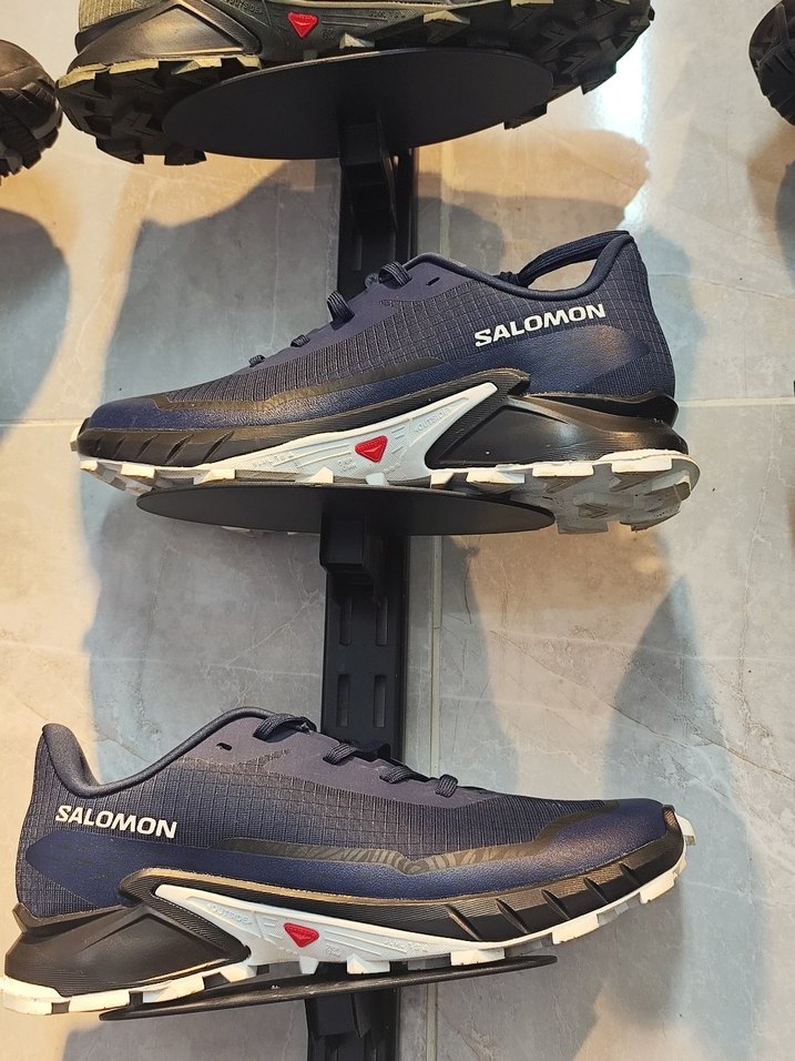 Salomon marka, lacivert baskılı erkek spor ayakkabısı. Kauçuk tabanlı, bağcıklı, sokak stili ve spor görünümü bir arada sunar.